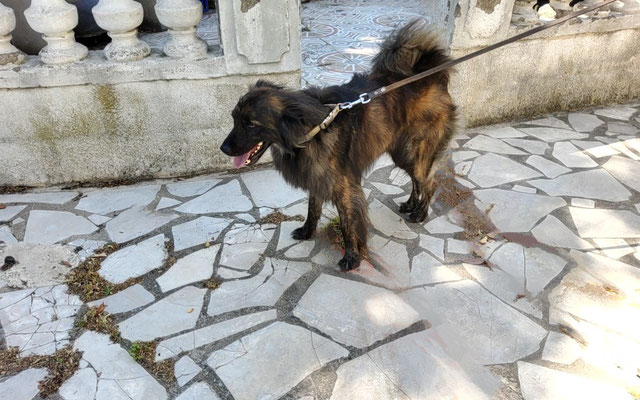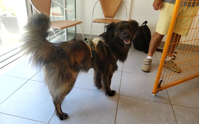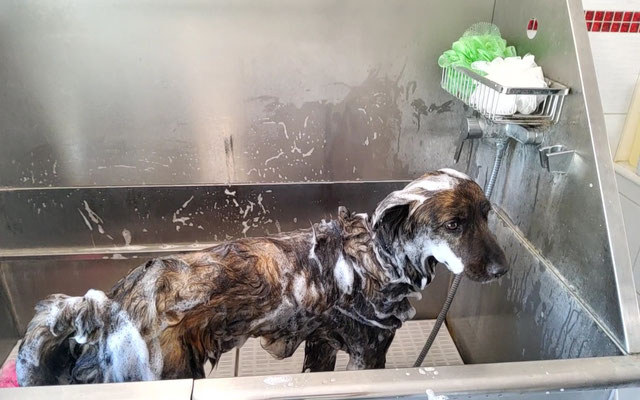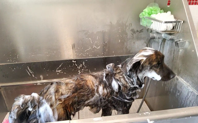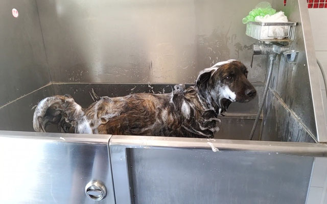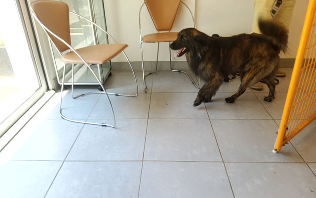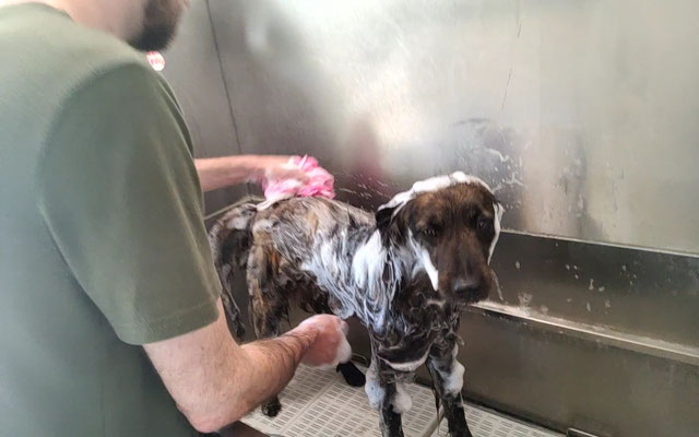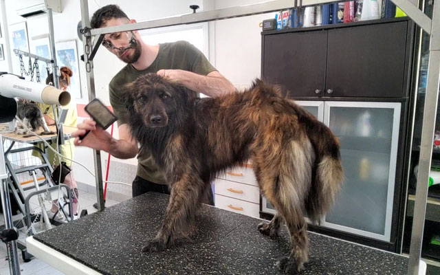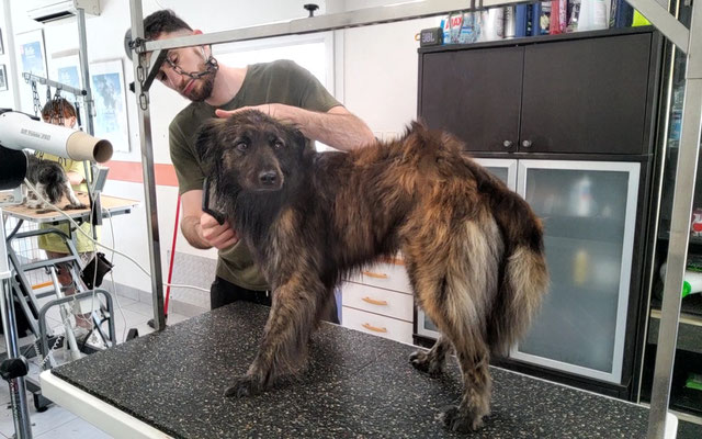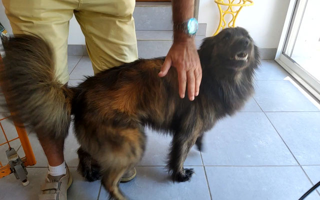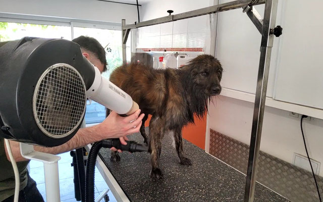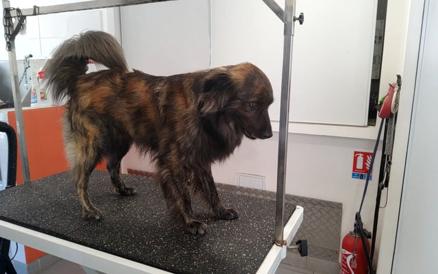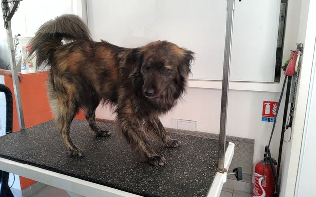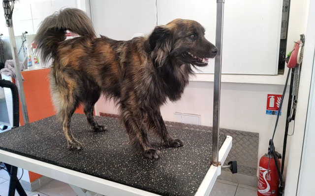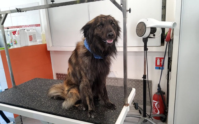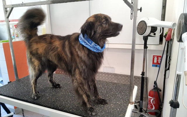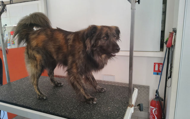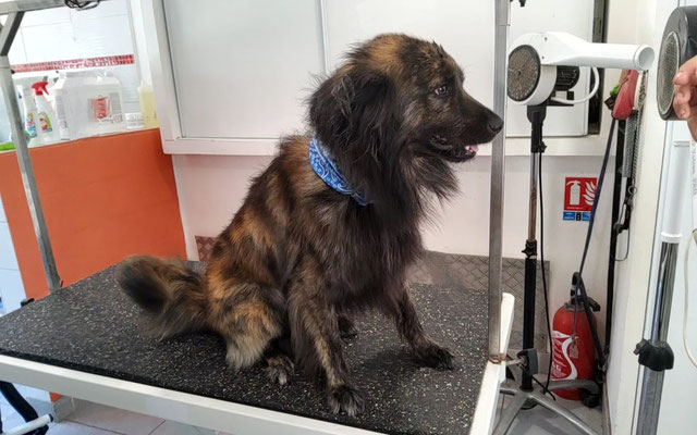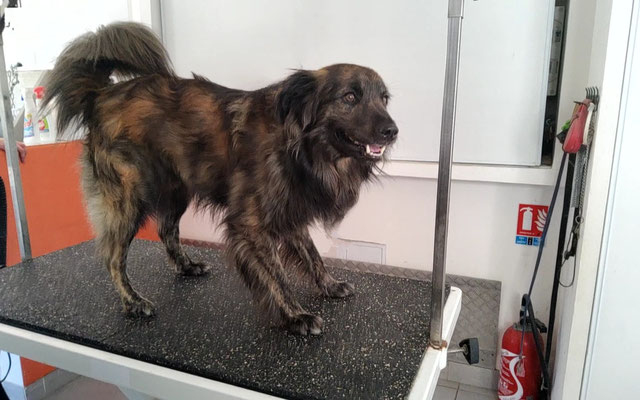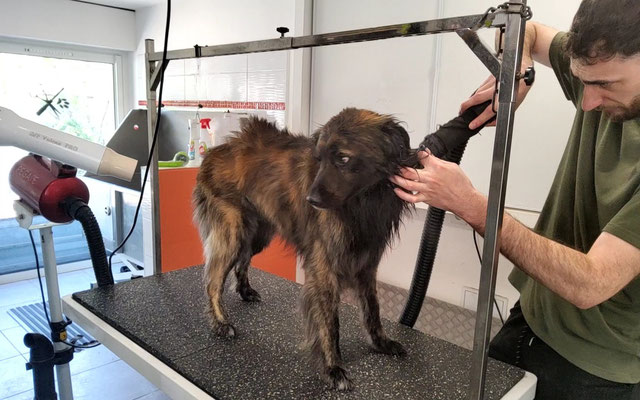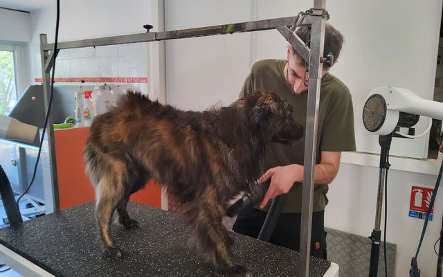 Le Berger des Pyrénées a face rase. Forfait : bain - brushing - ongles .